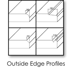 Standard outside edge profiles ‘A’ through ‘M’ are available. See outside edge profiles for more options.