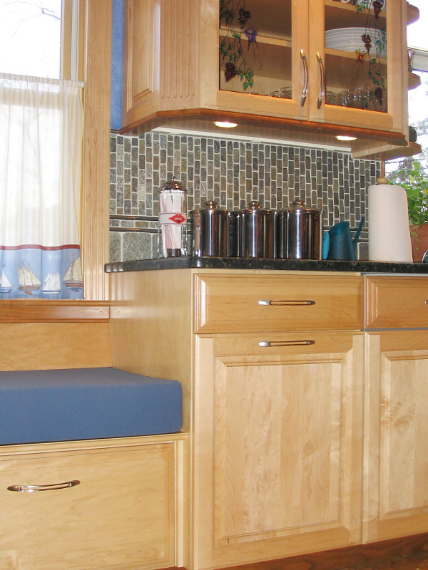 We can tool our cabinet bottoms with specialized slots for recessed lights including pathways drilled for wires.
